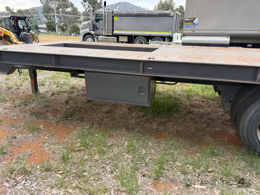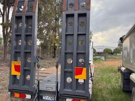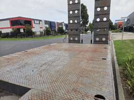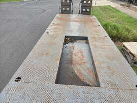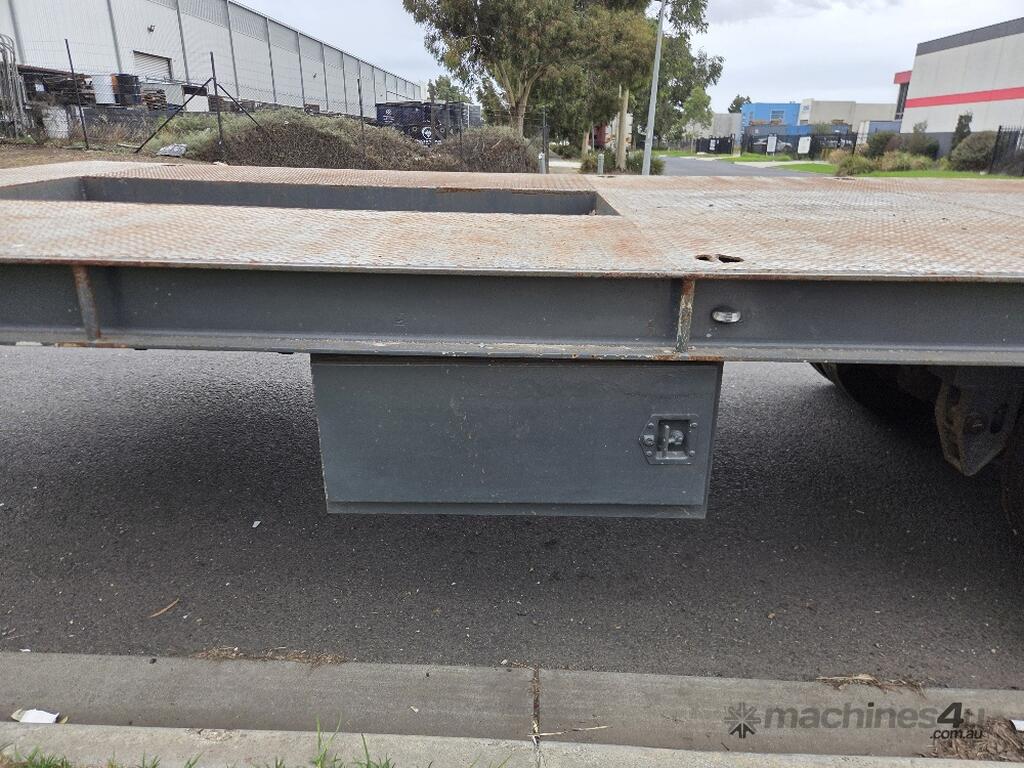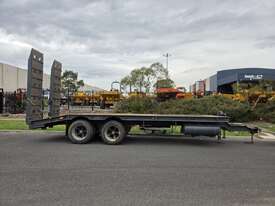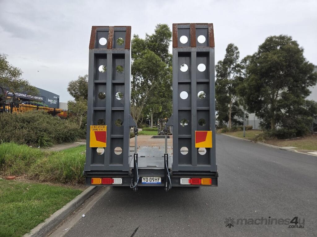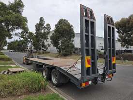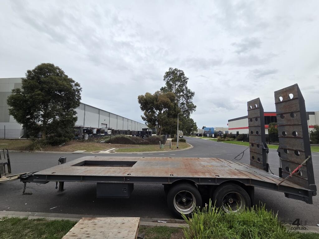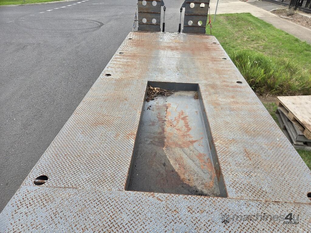 USED ROLLINGS 2001 STEEL PLANT TRAILER (TR052) WITH BARTLETT BALL HITCH, 20,000kg ATM, TANDEM AXLE, HYDRAULIC RAMPS, JOCKEY STAND. 6000mm DECK PLUS 1400mm BEAVER TAIL, 2500mm WIDE, 2700mm RAMP LENGTH, 9400mm OVERALL LENGHTH.