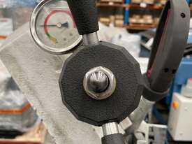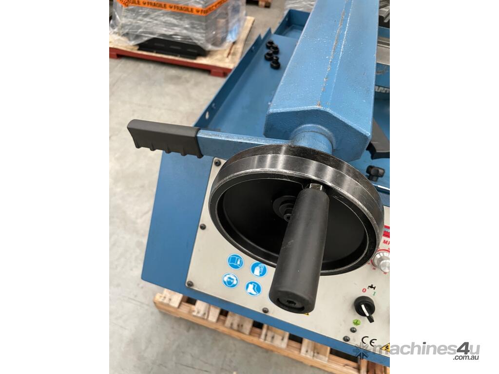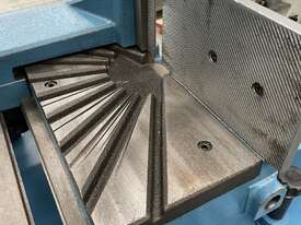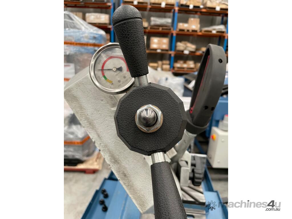 This variable speed double mitre saw is built for accuracy and production! Easy quick action angle set-ups between 0 and 60 degrees means no wasted time between cuts. Lever controlled blade guide locks allow adjustments right up to the work piece for optimum support and the blade guides have fully adjustable ball bearings so you know you're going to get straight cuts. And when you're done, use the quick release lever and stock length stop to get on with the next cut. It's fast and simple to use! We have included other features including carbide blade guides, blade pressure gauge, hydraulic down feed, trigger switch opertion, to set this aside from other base machines.