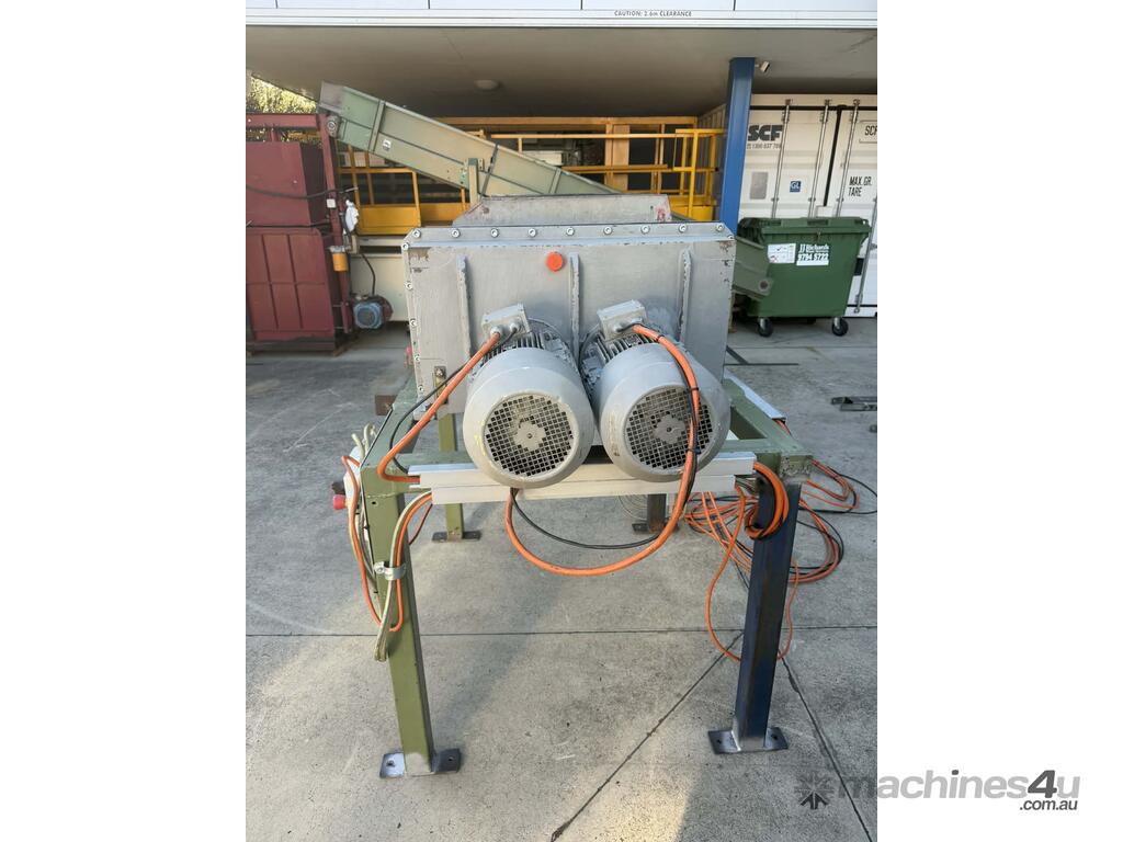 UNTHA RS 40 - 4S INDUSTRIAL SHREDDER FITTED WITH IN FEED CONVEYOR.