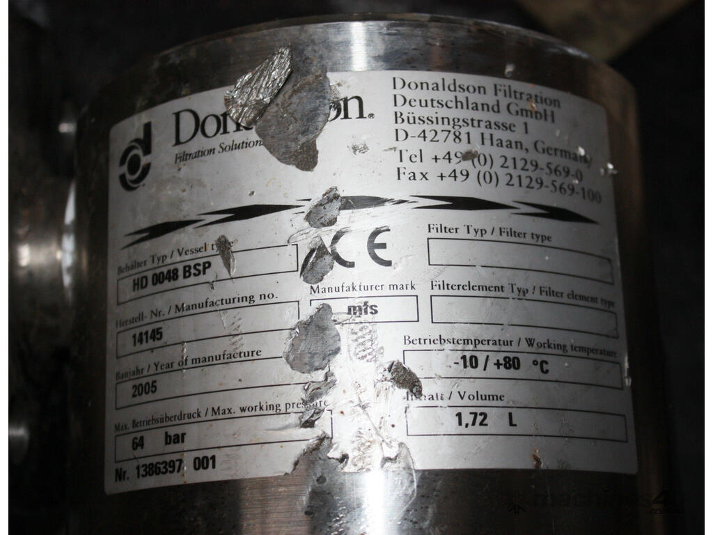 Donaldson ultrafilter HD 0048 BSP 64bar high pressure stainless filter