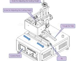 The machine includes a PLC based pneumatic trimmer which works in conjunction with the sealer head, allowing a faster sealing rate of up to 10-15 per min – user and product dependant using copper blocks.