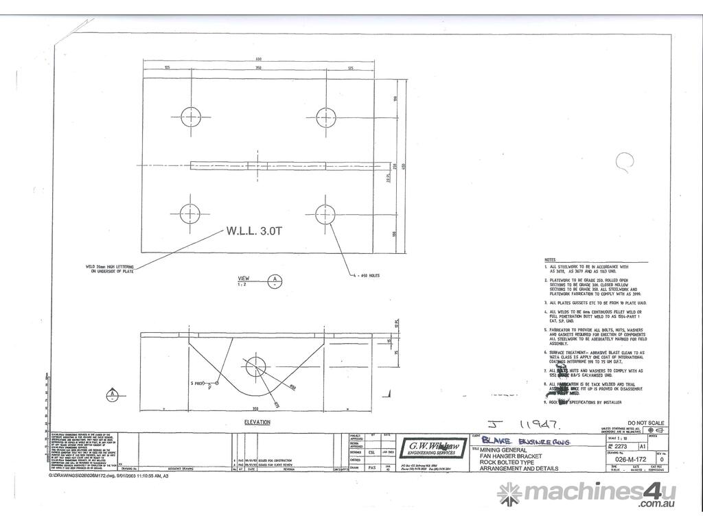 Underground Mining Fan Hangers :      $50,000 AUD($55,000 Inc. GST)