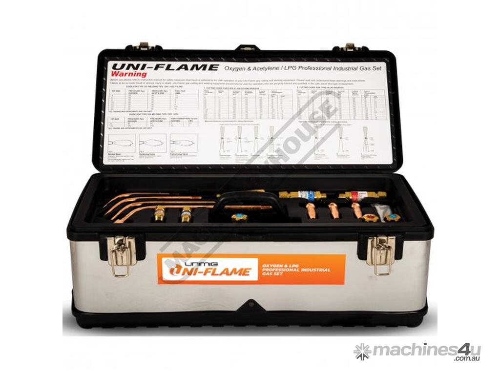 LPG Cutting and Welding Kit:UNIFLAME regulators have been independently tested to and comply with Australian Standards AS4267 including Oxygen promoted ignition test, IBEDA Flashback arrestors comply to Australian Standards AS4603. Gas hoses independently tested and comply to Australian standard AS1335.Includes: