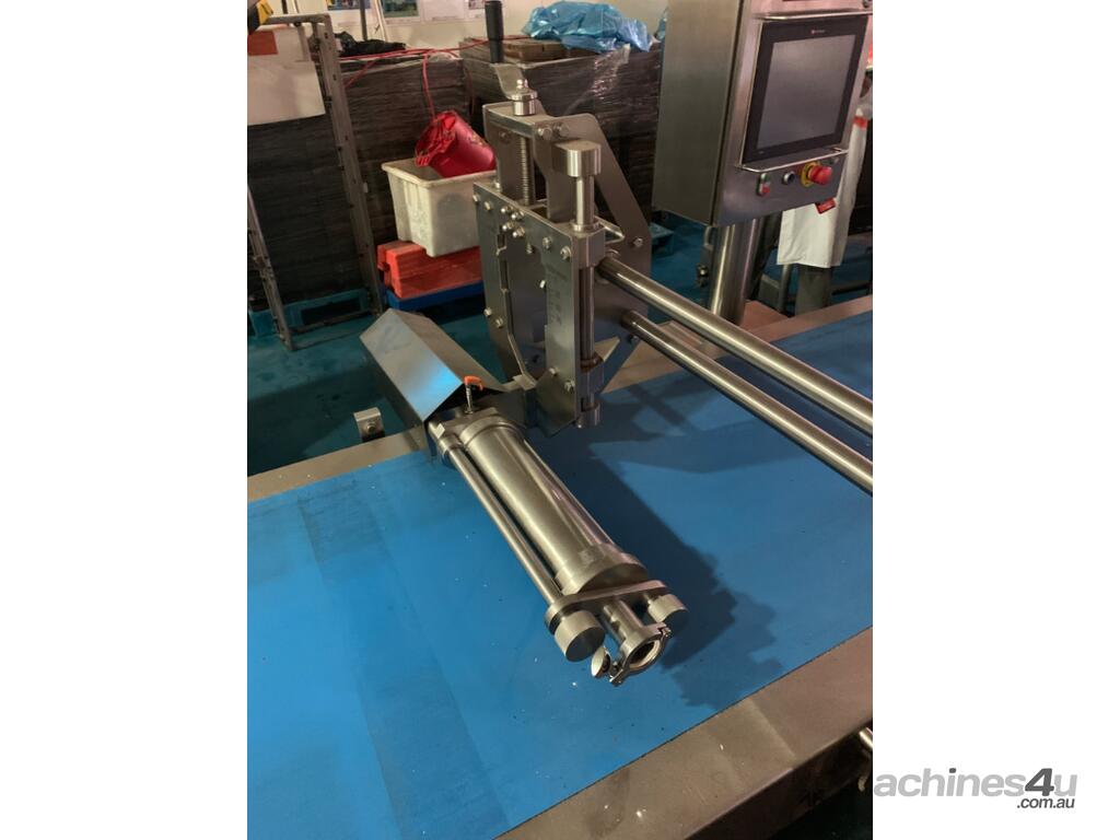 2019 'Unifiller' Mid Fill Conveyor with height adjustable cream filling servo nozzle for sale.