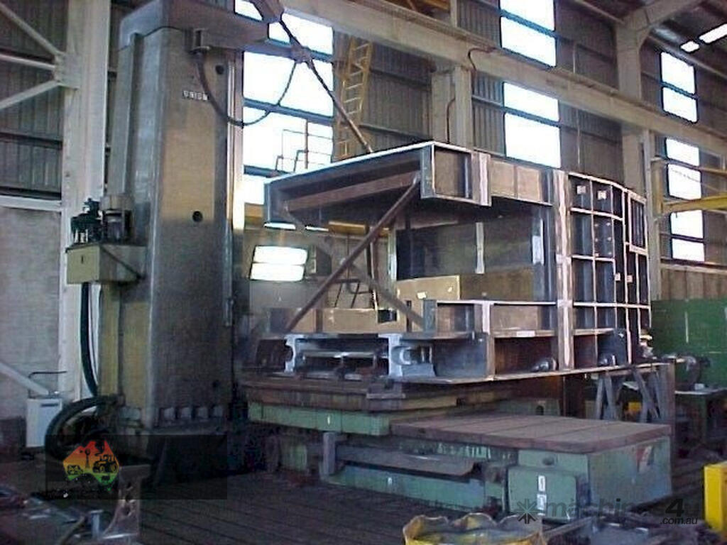 Union BFT 125 fFloor borer 5m travel 2.8 mverical travel has a buit in facing head and a 125mm sindle with a 50 taper has 2 floor plates now dismantled o our foorthere is no rotary table need inspection