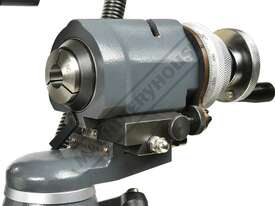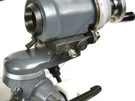 With the accessories provided the universal "D" bit grinder can be set up to grind end mills, slot drills and drill bits.