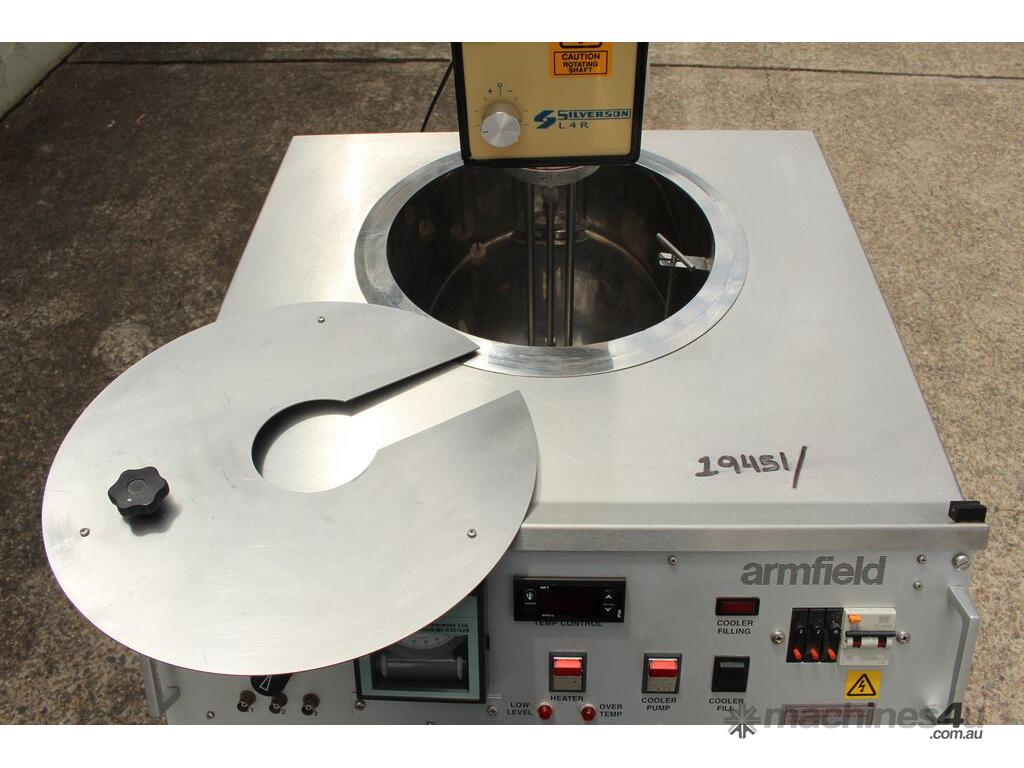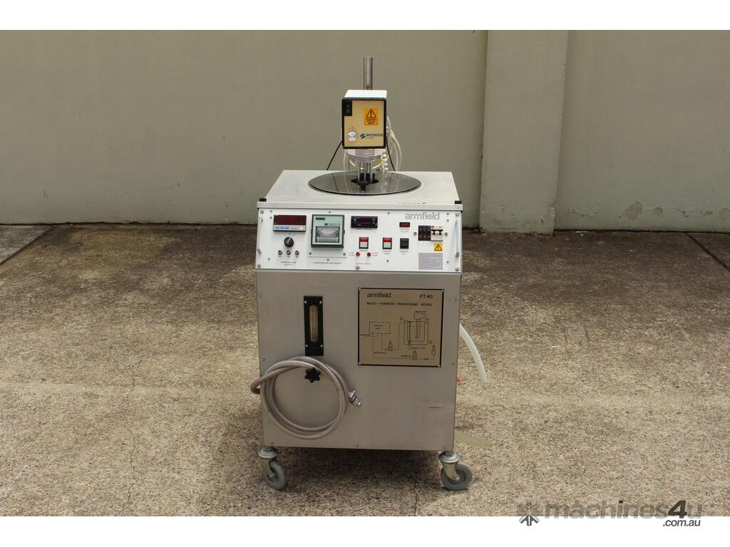 Universal Process Tank, "Armfield" Model FT40, capacity 20L, with Silverson L4R Emulsifier stainless steel wetted part, mixing, emulsification, pasteurization, incubation, fully self-contained system in mobile cabinet, dual-purpose heating and cooling jacket, heating to 85°C, cooling to 1°C, mobile