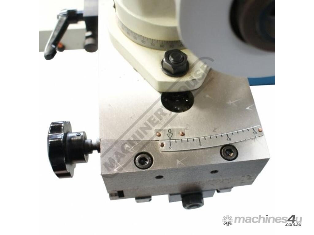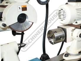 Includes motorised work head tailstock & diamond dish grinding wheel