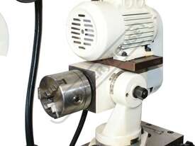 The motorised work-head allows for small cylindrical grinding between centres or if required single ended work mounted in the chuck.