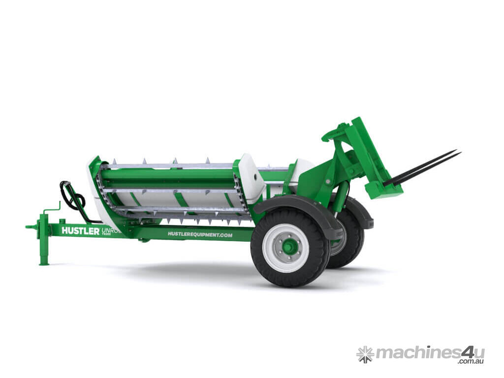 The latest series 2 model retains the fundamental Hustler advantages such as the unique chassis design that protects the chains from dragging on the ground, the patented Total Control self-loading system, the toughest chain/floor setup on the market, and the ultra-low maintenance roller bearings and adds several improvements such as covered drive shafts to prevent wrapping, larger wheels for improved ride, improved stability, large string box as standard, and a beefier rear loading system for longer life.