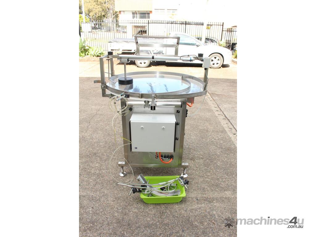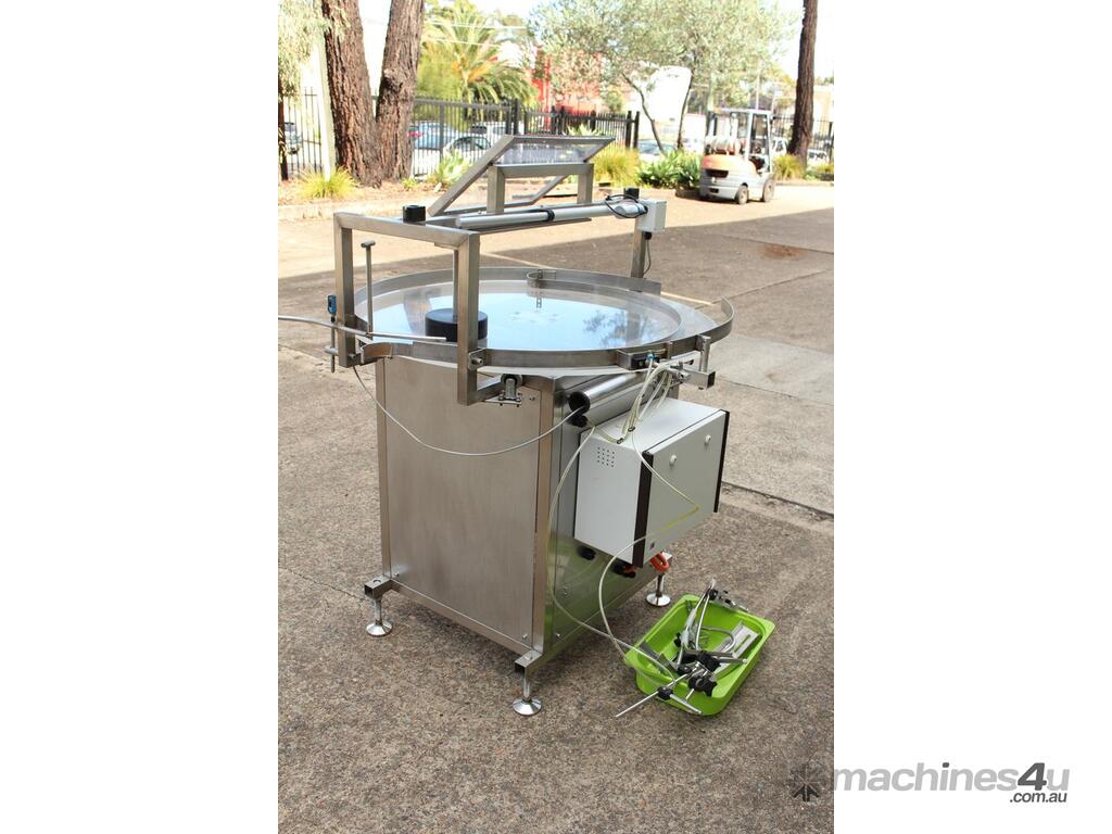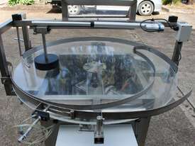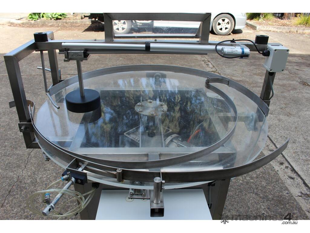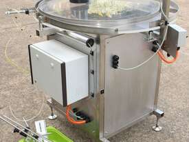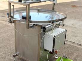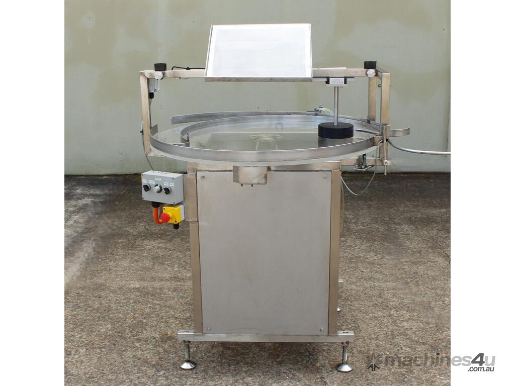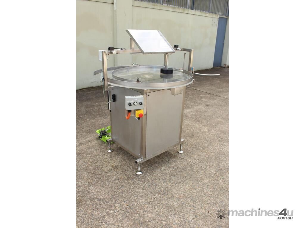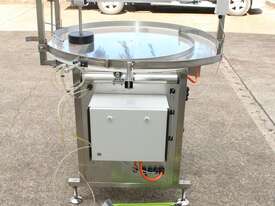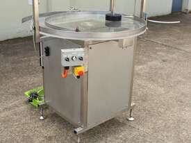 Unscrambling Turn Table, 1000mm dia table, stainless steel structure and plastic top, provided with side rail, control box with on/off, variable speed controller and rotation switch, single phase