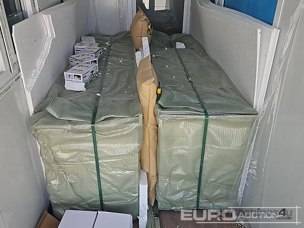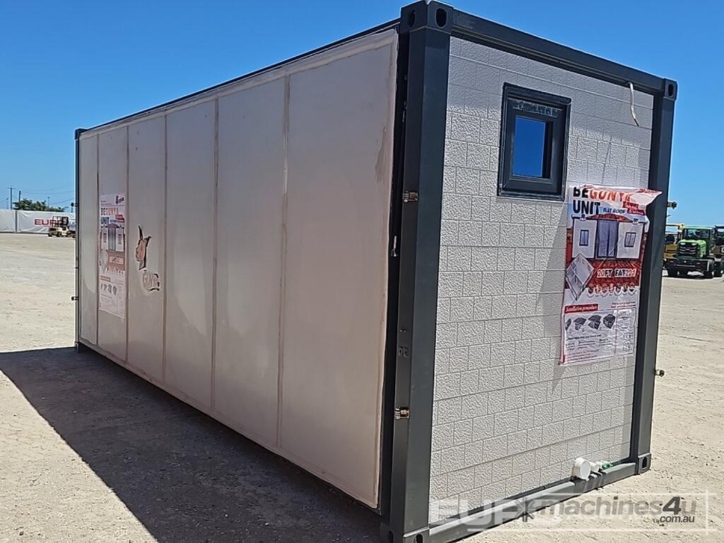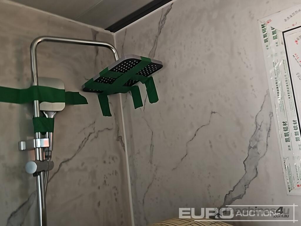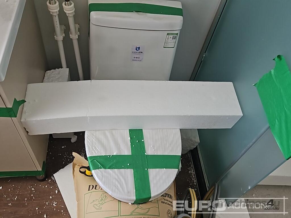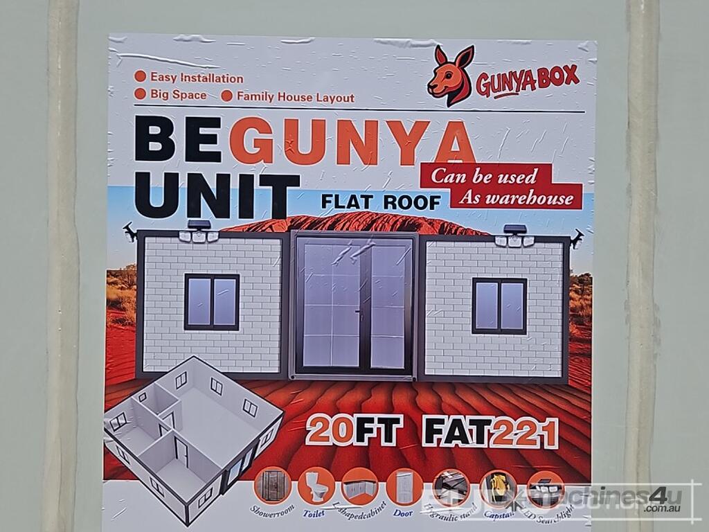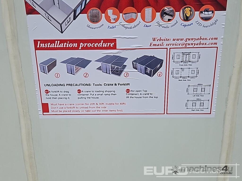 Unused 2025 GUNYA FAT221 Folding Flat Roof Portable Unit, One Bathroom, Three Areas, Two Sets Of Cabinets, One With Sink, Windows Have Screens, With 5 Solar Sensor Lights For Outside - GYFAT202501