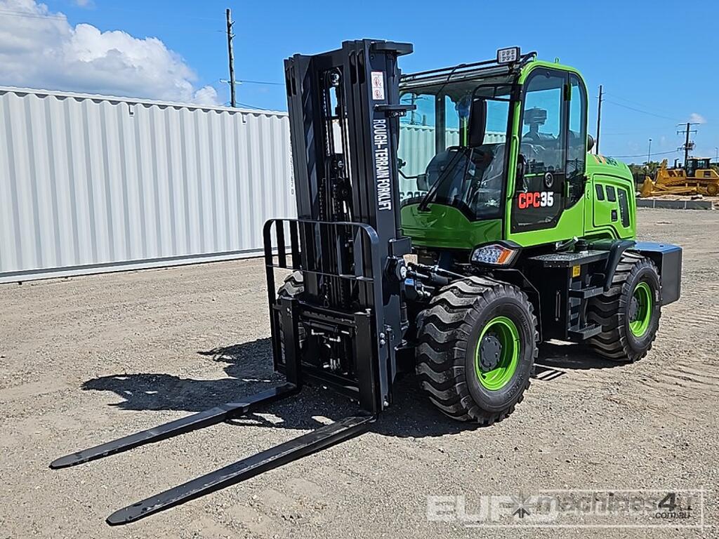 Unused 2025 JQ Power CPC35 4x4 Rough Terrain Forklift, 3.5 Ton, 3 Stage Mast, 4 Cylinder Diesel Engine - JQPOWER