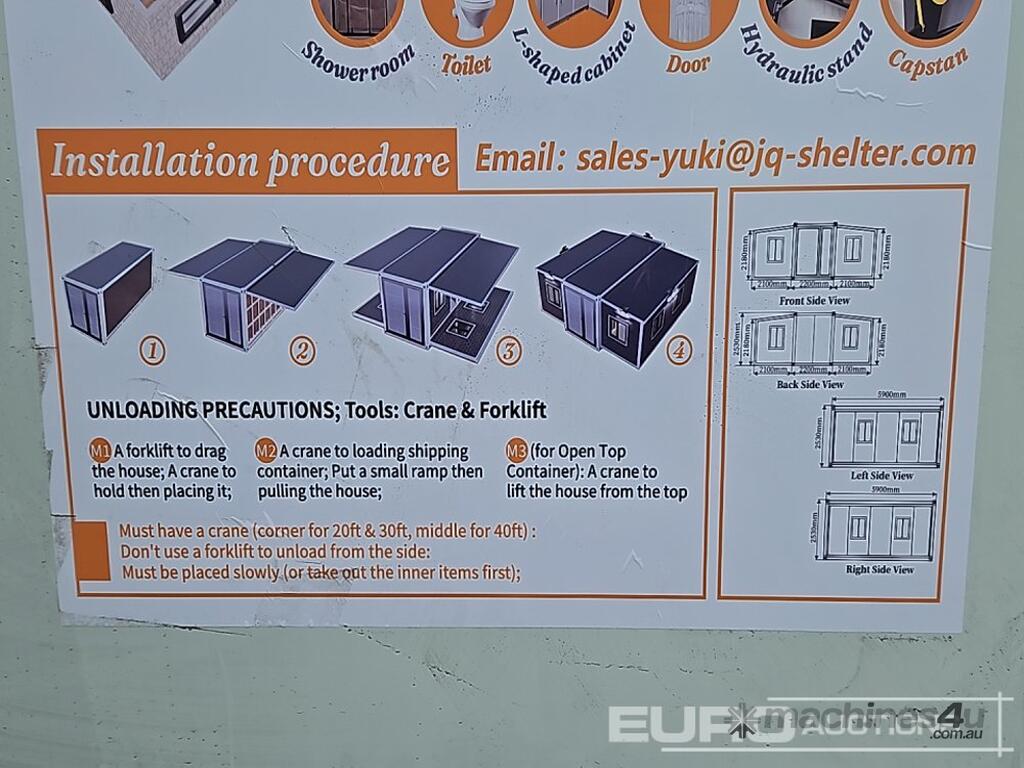 Unused 2025 JQ Shelter JQ2120 Folding Portable House/ Office, Two Bedrooms, One Living Room, Two Sets Of Cabinets One With Sink, Windows Screens, Shower Room, Toilet, L-Shaped Cabinet, Door, Hydraulic Stand, Capstan - JQ20250031