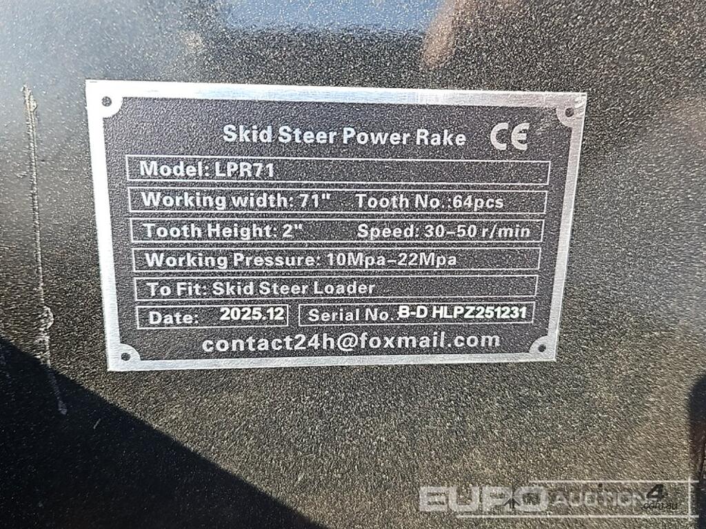 Unused 2026 Captok CK-LPR71 Power Rake to suit Skidsteer - B-D HLPZ251231