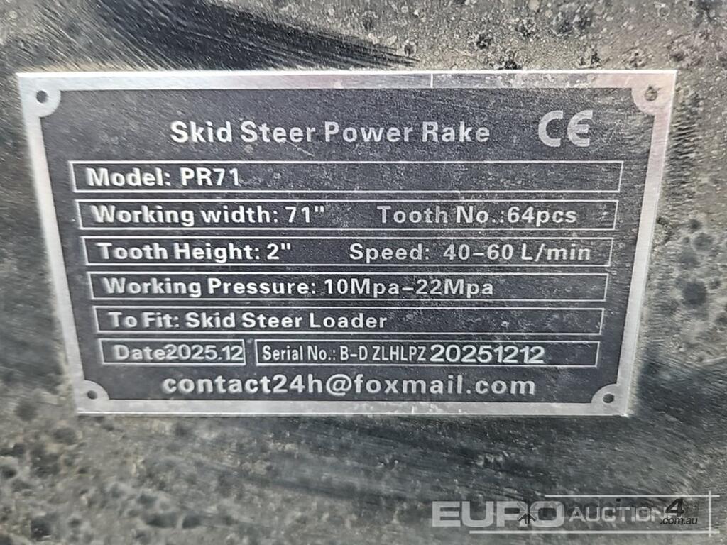 Unused 2026 Captok CK-PR71 Power Rake to suit Skidsteer - B-D ZLHLPZ20251212