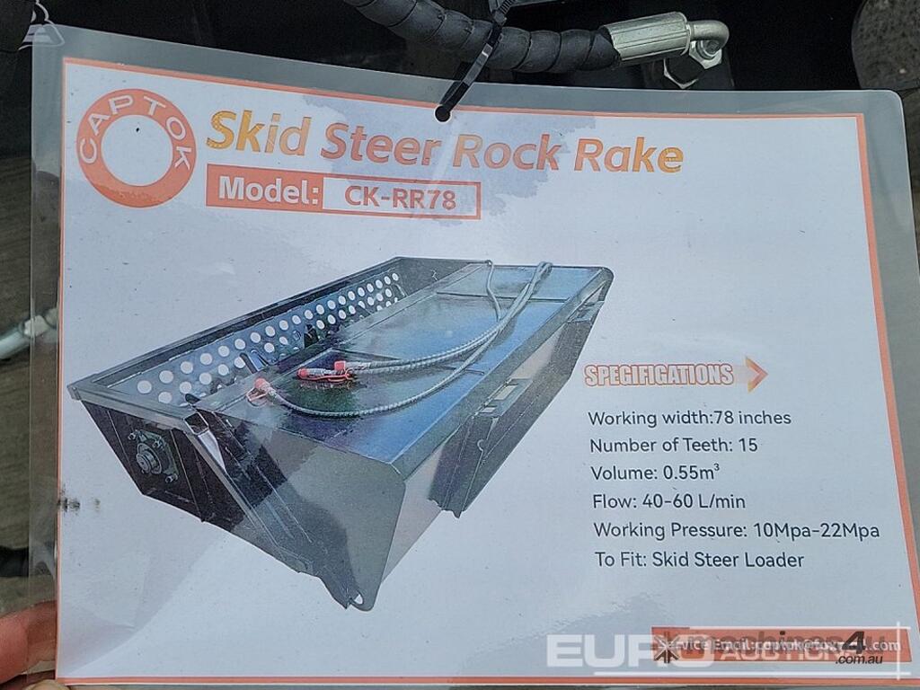 Unused 2026 Captok CK-RR78 Rock Rake to suit Skidsteer - YSPZ251272