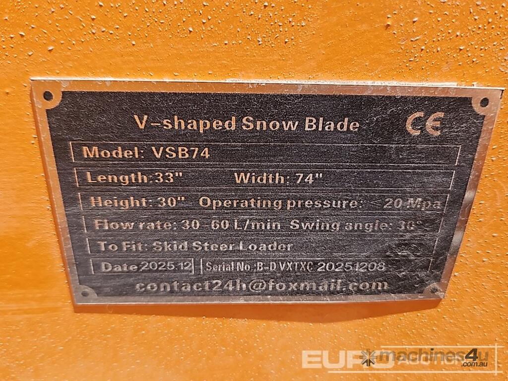 Unused 2026 Captok CK-VSB74 V-Shaped Snow Blade to suit Skidsteer - B-D VXTXC20251208