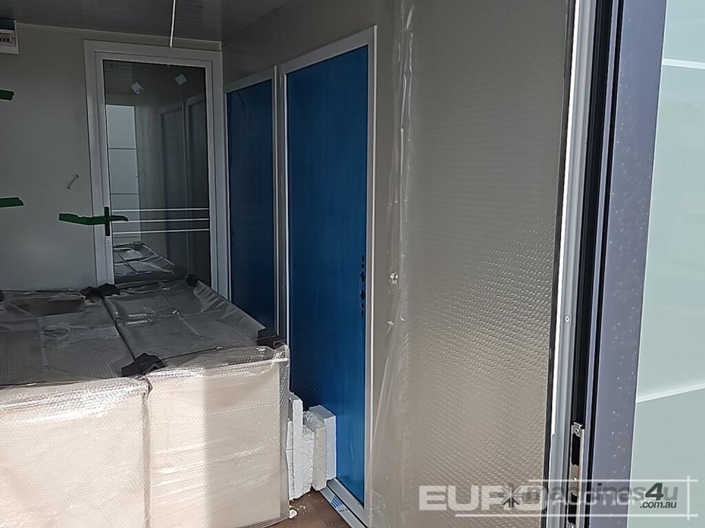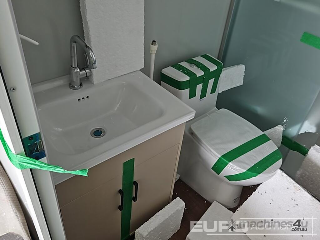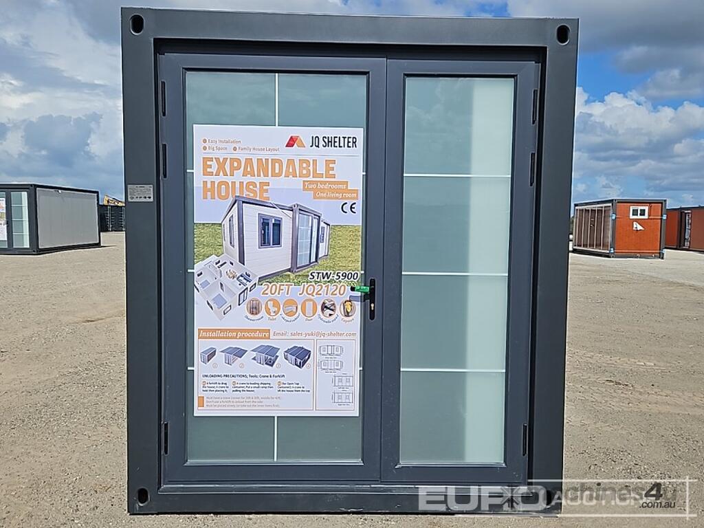 Unused 2026 JQ Shelter JQ2120 Folding Portable House/ Office, Two Bedrooms, One Living Room, Two Sets Of Cabinets One With Sink, Windows Screens, Shower Room, Toilet, L-Shaped Cabinet - JQ20260036