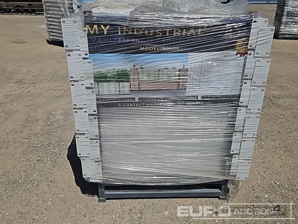 Unused 2026 KMY Industrial 1040x1000mm Galvanized Iron Fence Panel (25 of) (White) - 23919-28