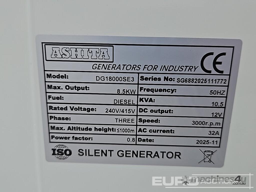 Unused Ashita Power DG18000SE3 10KvA Generator - 2991-29