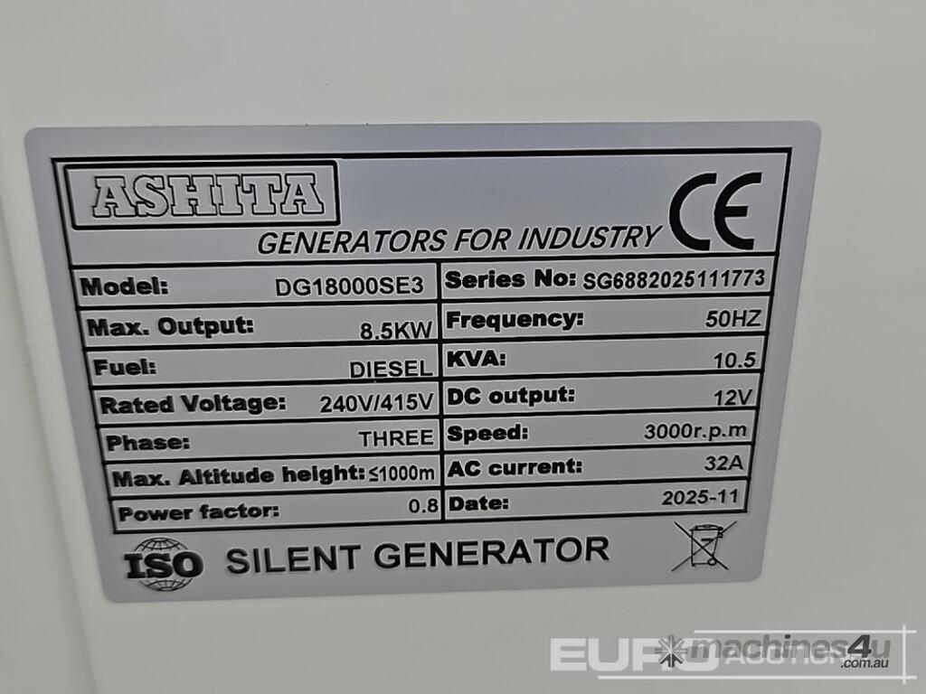 Unused Ashita Power DG18000SE3 10KvA Generator - SG773