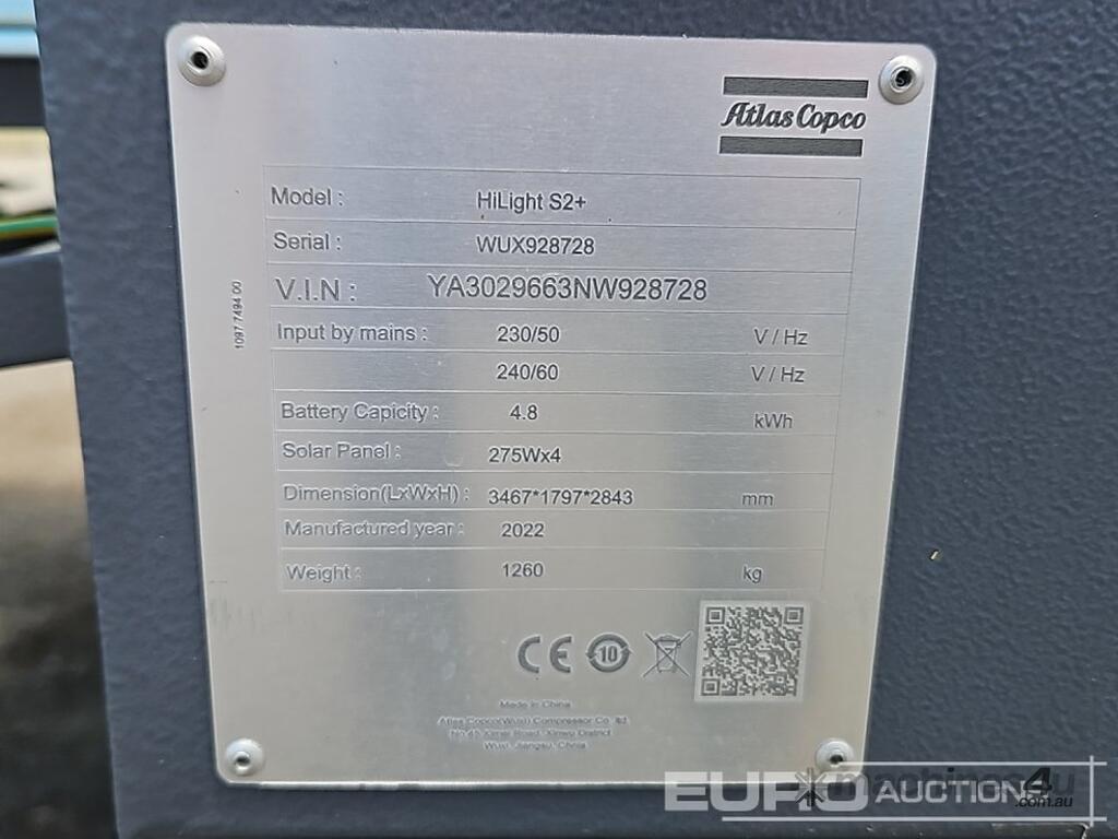 Unused Atlas Copco HiLight S2 Plus Single Axle Lighting Tower, Solar Panels - WUX928728