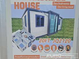Unused JQ Shelter JQ2120 Expandable Folding Portable House/office, Two Bedrooms, One Living Room, Two Sets Of Cabinets One With Sink, Windows Screens, Shower Room, Toilet L Shaped Cabinet, Door, Hydraulic Stand Capstan - 51168