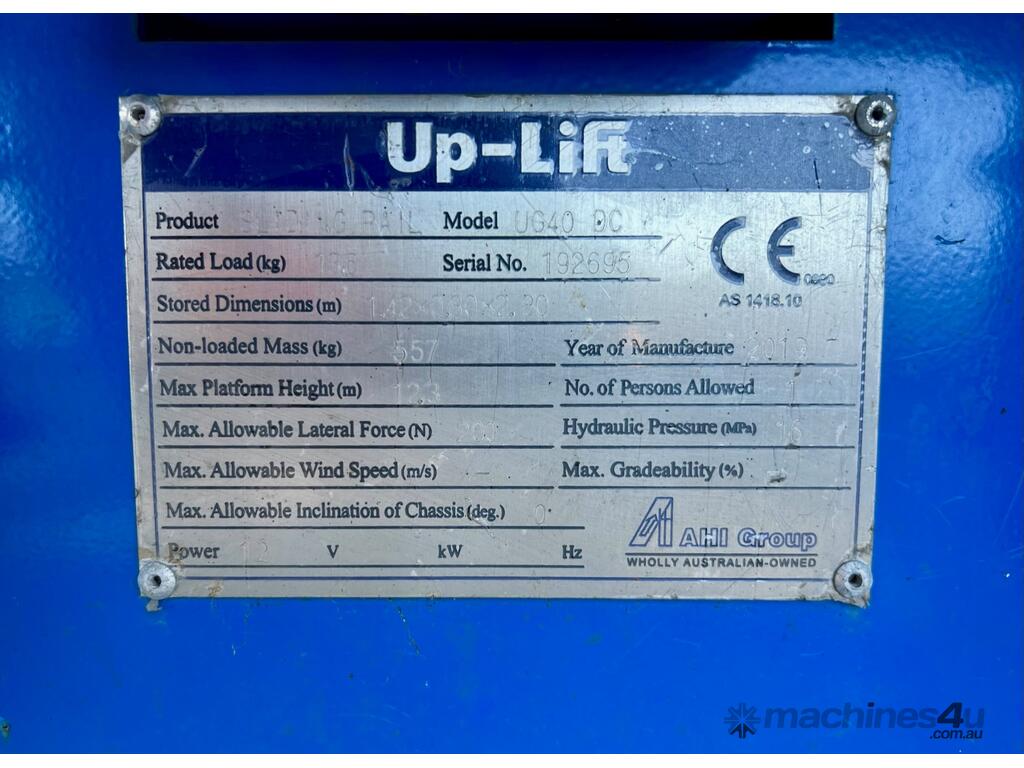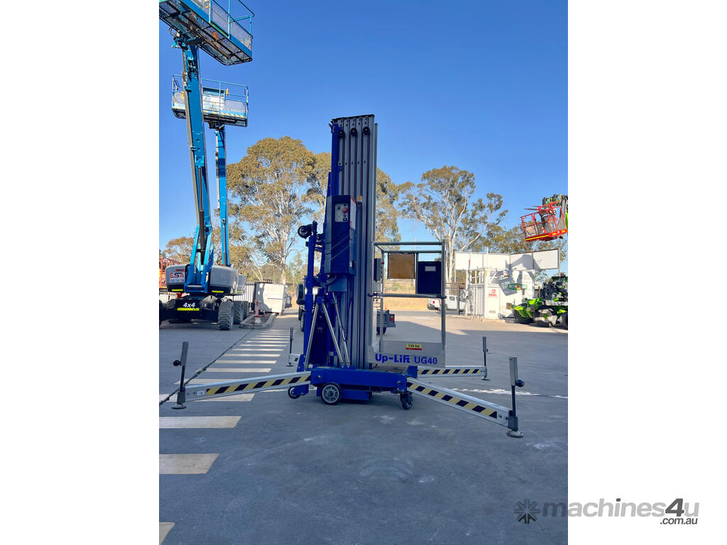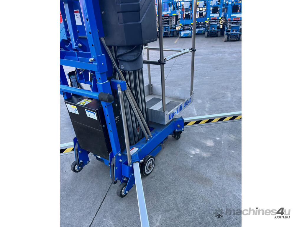 The Up-Lift UG40 is the perfect single-man lift for high-reach tasks, offering a reliable solution with a working height of 14.3 meters. Ideal for a range of applications, it combines compact design with impressive height capabilities, making it suitable for tight spaces and elevated tasks.