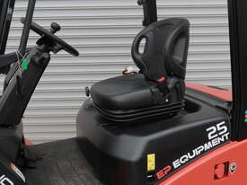 This 2.5T electric forklift truck is ideal for beverage, logistics, construction, and more, suitable for both indoor and outdoor environments.