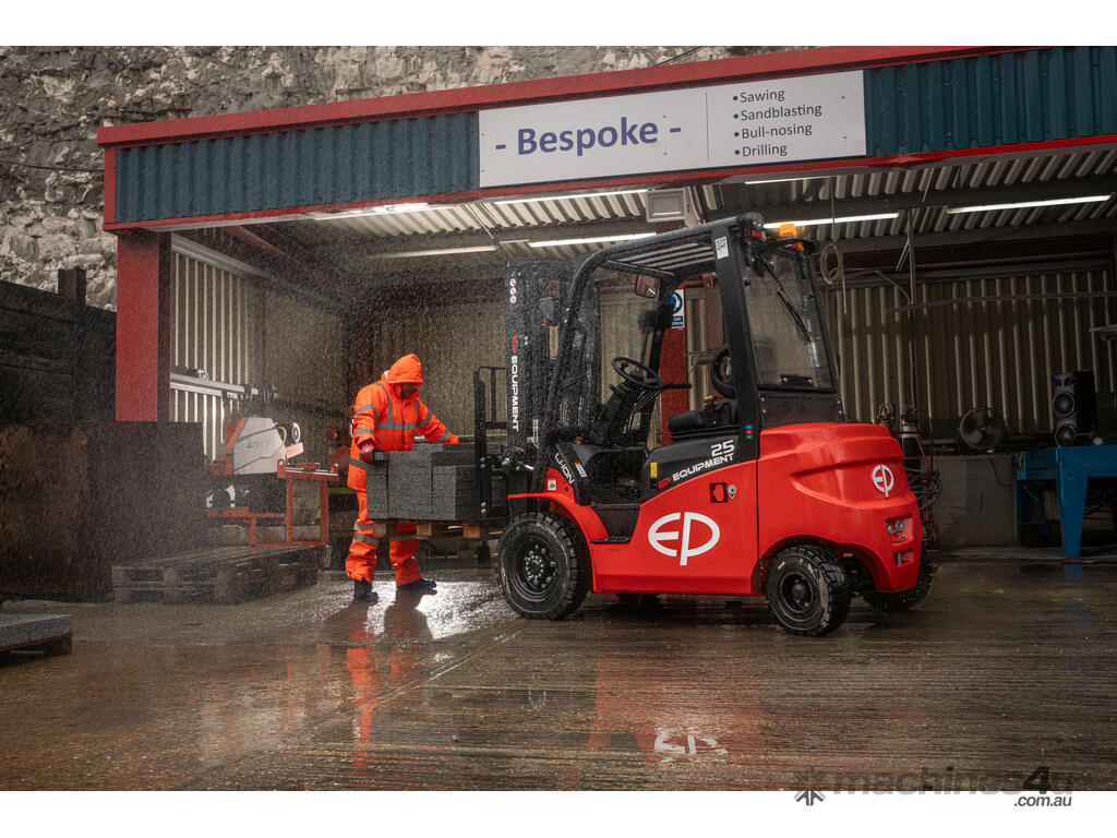 This 2.5T electric forklift truck is ideal for beverage, logistics, construction, and more, suitable for both indoor and outdoor environments.