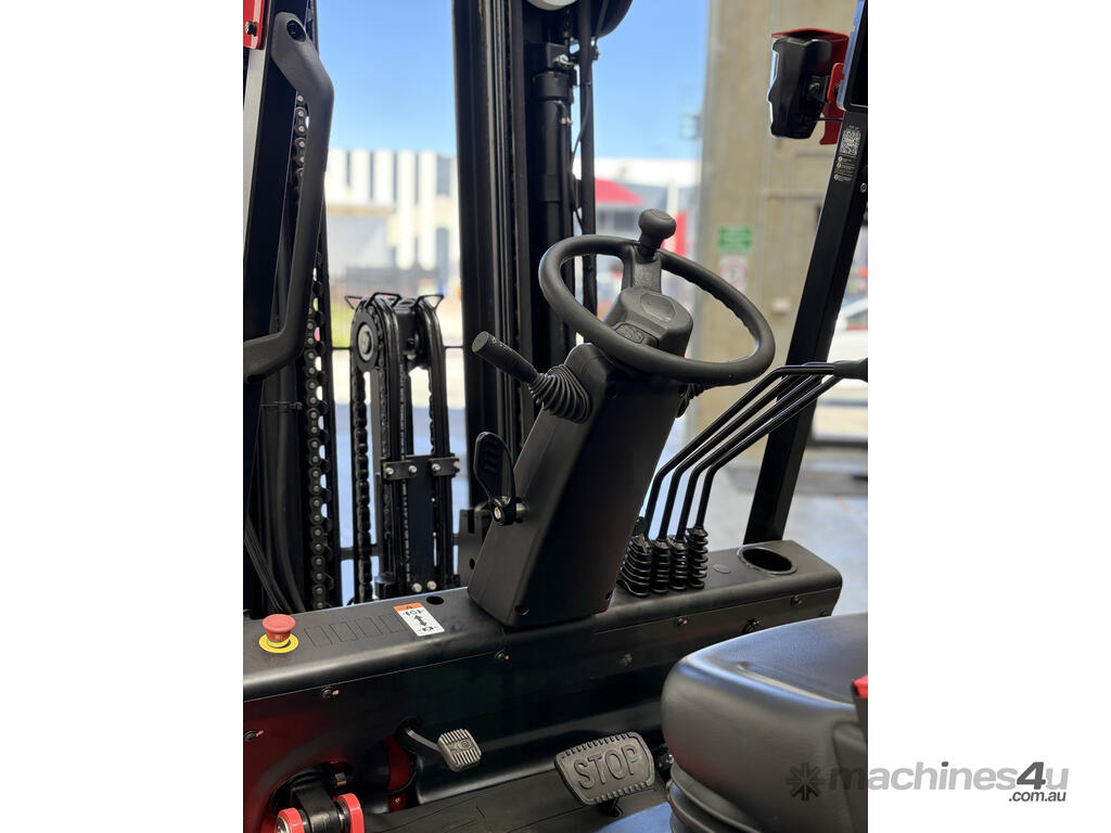The EFL203 is offering a 2-ton load capacity with significant performance and battery upgrades. This model combines the strength of IC forklifts with the eco-friendliness & efficiency of lithium technology. Available in two versions, standard and Premium, it caters to diverse operational needs. The EFL203 also features an expanded battery capacity option of 460Ah for extended operational uptime and boosted efficiency.