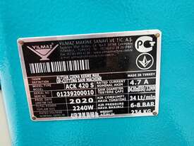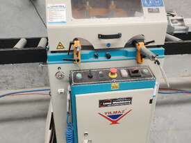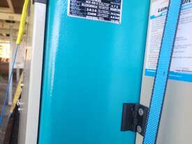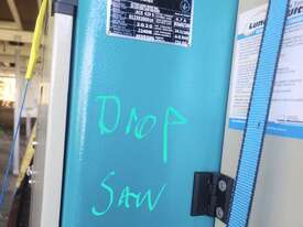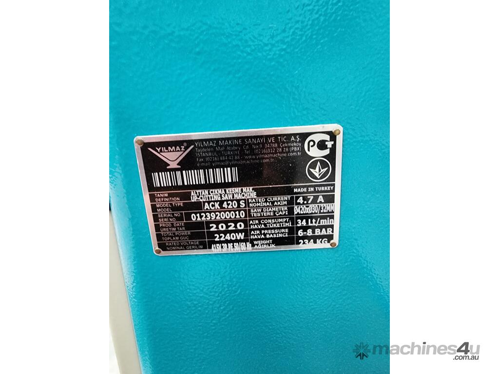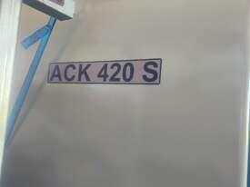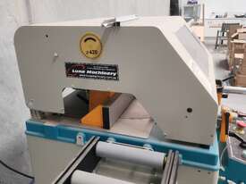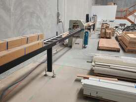 Luna ACK420 S upcut saw including entry and out feed conveyors and graduated measuring stop.