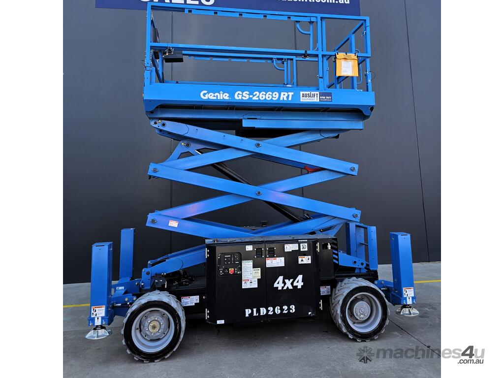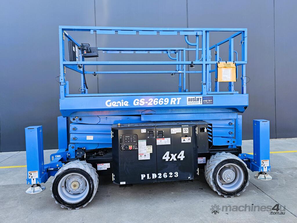This model is designed for operator comfort and productivity, featuring intuitive controls for smooth, precise lifting and driving. The 2021 Genie GS-2669 RT is built to handle tough conditions while keeping maintenance to a minimum, making it a cost-effective and durable solution for rough terrain environments. Whether you're working on construction projects or maintenance tasks, this scissor lift provides the safety, strength, and versatility you need to get the job done efficiently.