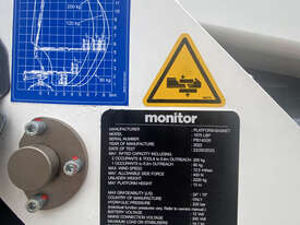 Uniquely, the dog-leg shaped stabilizers provide a huge amount of travel for setting up on very uneven terrain. The Monitor 1575 PRO is also equipped with a 14 hp water-cooled twin cylinder Kubota diesel or petrol engine, auto-levelling, platform rotation, ed drive, and remote radio control and stabilization.