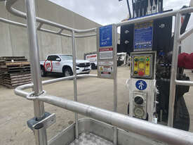 Aside from its capacity of 200 kg, the basket quickly and simply detaches with only one pin for accessing very tight locations. The basket can then easily be rolled along by one person on its own castor wheels.
