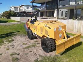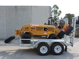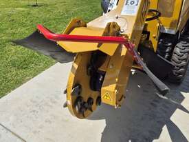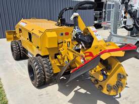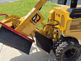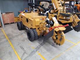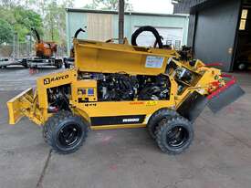 The RG80-R has a powerful 85-hp (63.4 kW) ford engine with a hydrostatic cutter wheel drive. Command Cut lets the operator vary the swing speed independently from engine speed while maintaining maximum torque and horsepower. The propel system features Hi and Low travel speeds plus an integrated “creep mode” for precise handling while cutting. The RG80 has a wireless remote control that is sealed against dust, water, and other elements. The wide hydraulic backfill blade saves time during clean up and can easily be folded in for passing through gates.