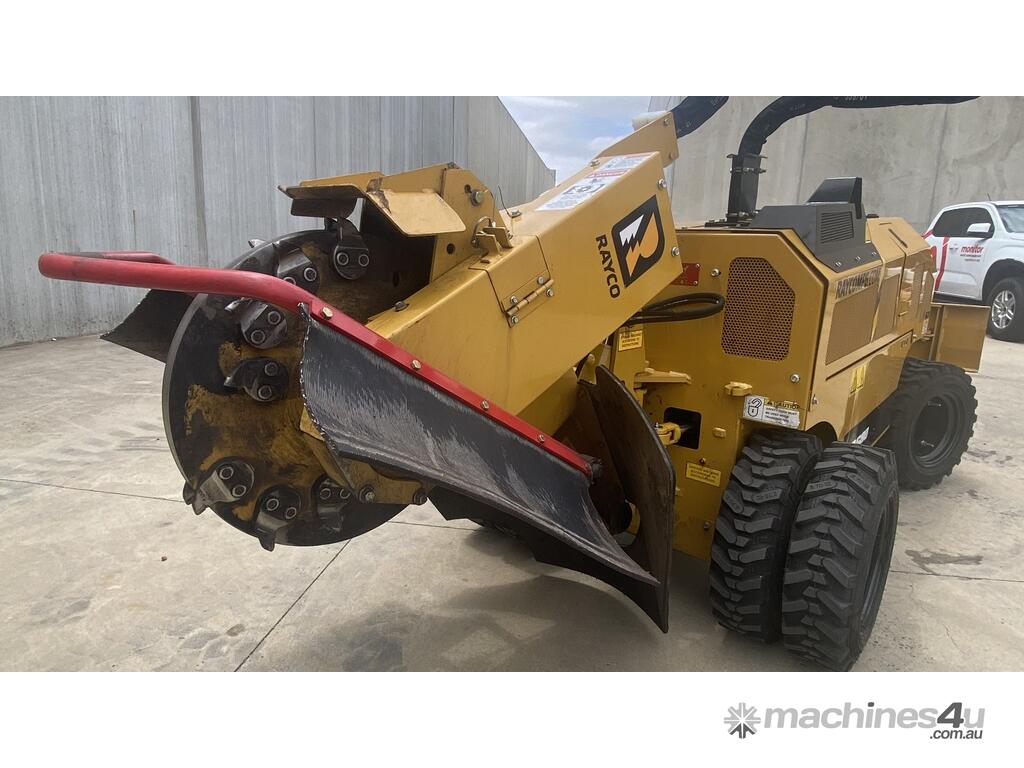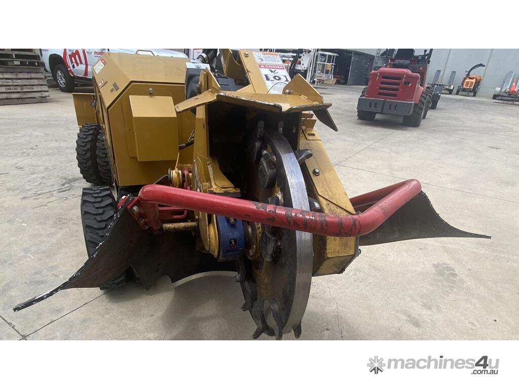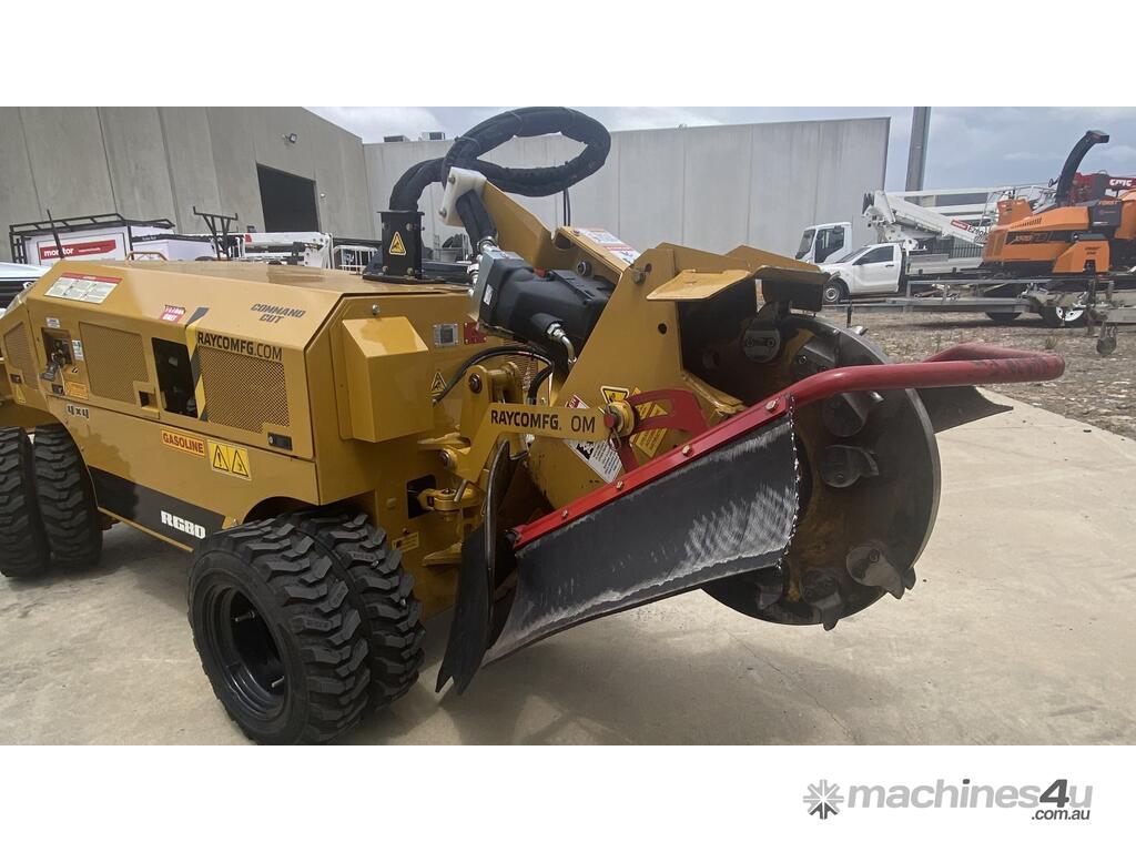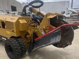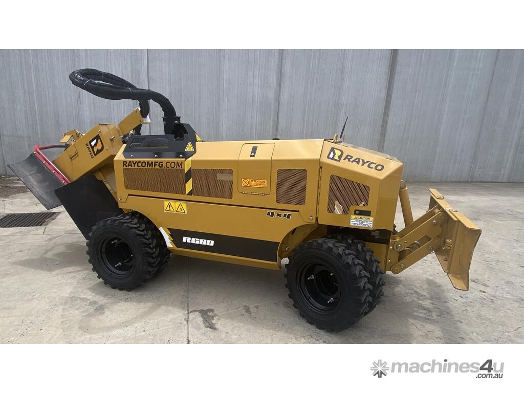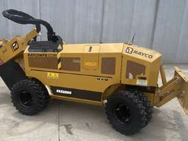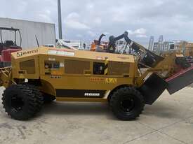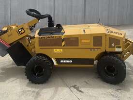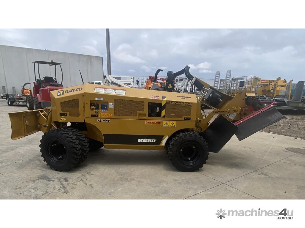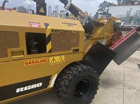 The RG80-R has a powerful 85-hp (63.4 kW) ford engine with a hydrostatic cutter wheel drive. Command Cut lets the operator vary the swing speed independently from engine speed while maintaining maximum torque and horsepower. The propel system features Hi and Low travel speeds plus an integrated “creep mode” for precise handling while cutting. The RG80 has a wireless remote control that is sealed against dust, water, and other elements. The wide hydraulic backfill blade saves time during clean up and can easily be folded in for passing through gates.
