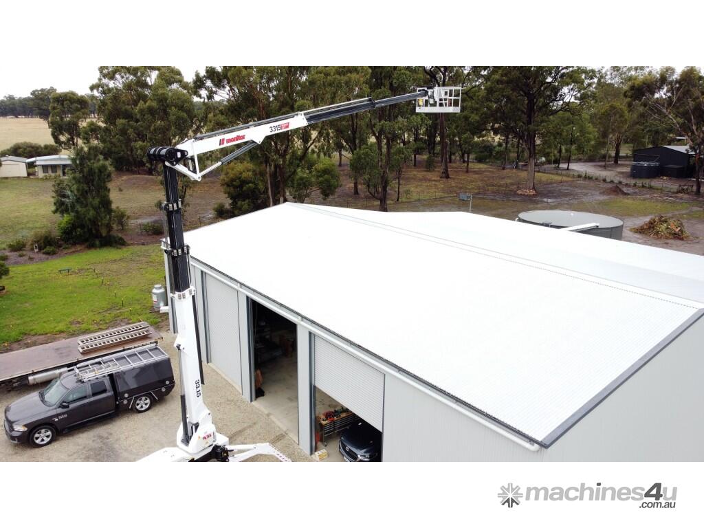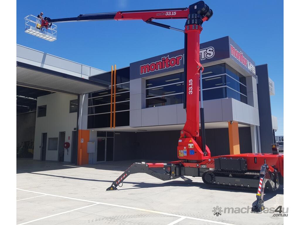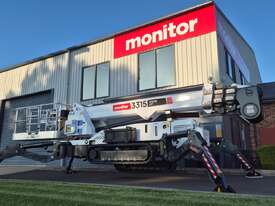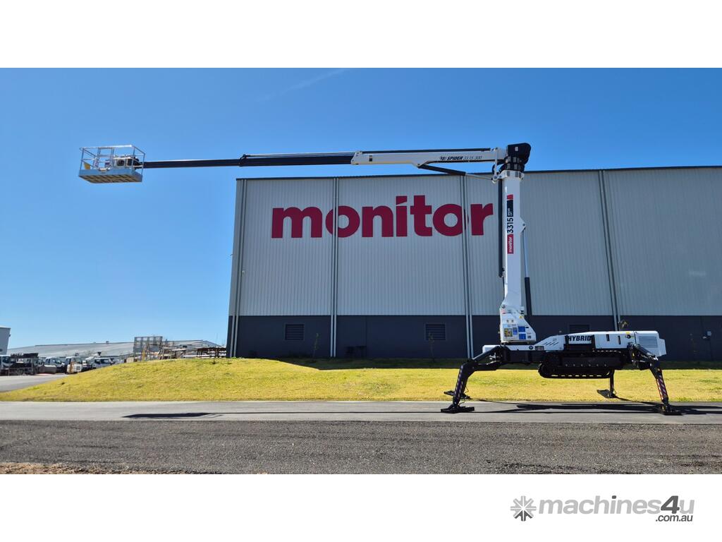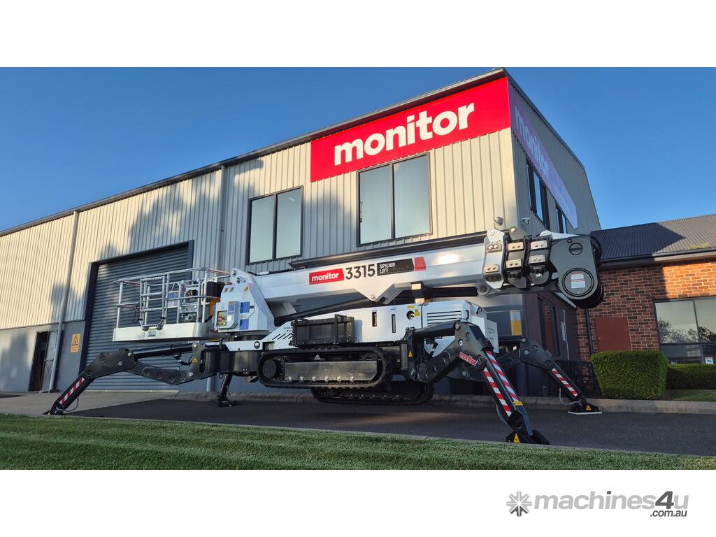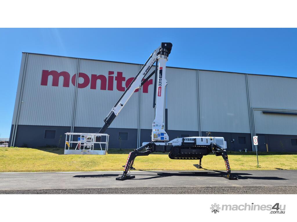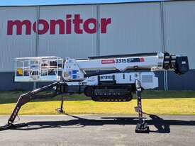 The Monitor 3315/300 Spider Lift’s unique telescoping articulated boom design provides exceptional up-and-over outreach specifications. Dual position stabilizer legs allow the 3315 to be set-up in the most difficult locations. Even with the stabilizers set in the narrow position, a complete 360 degrees slew is still possible.