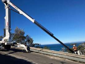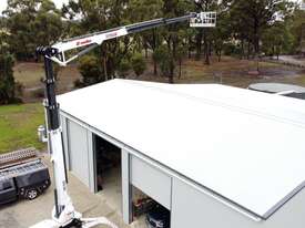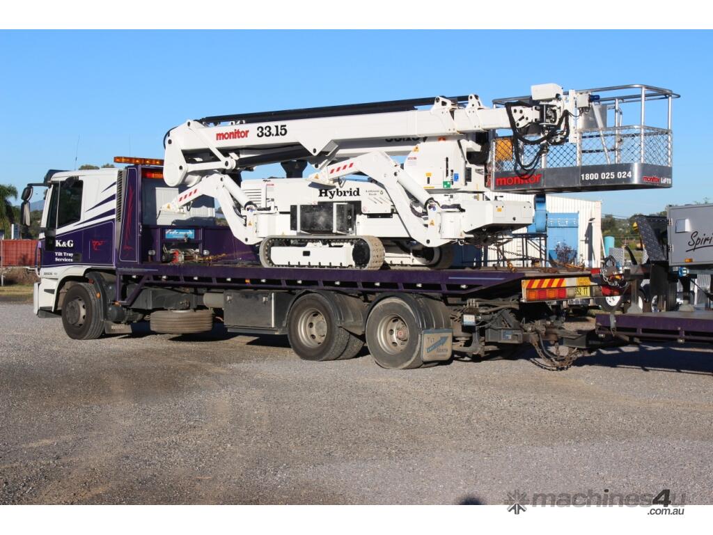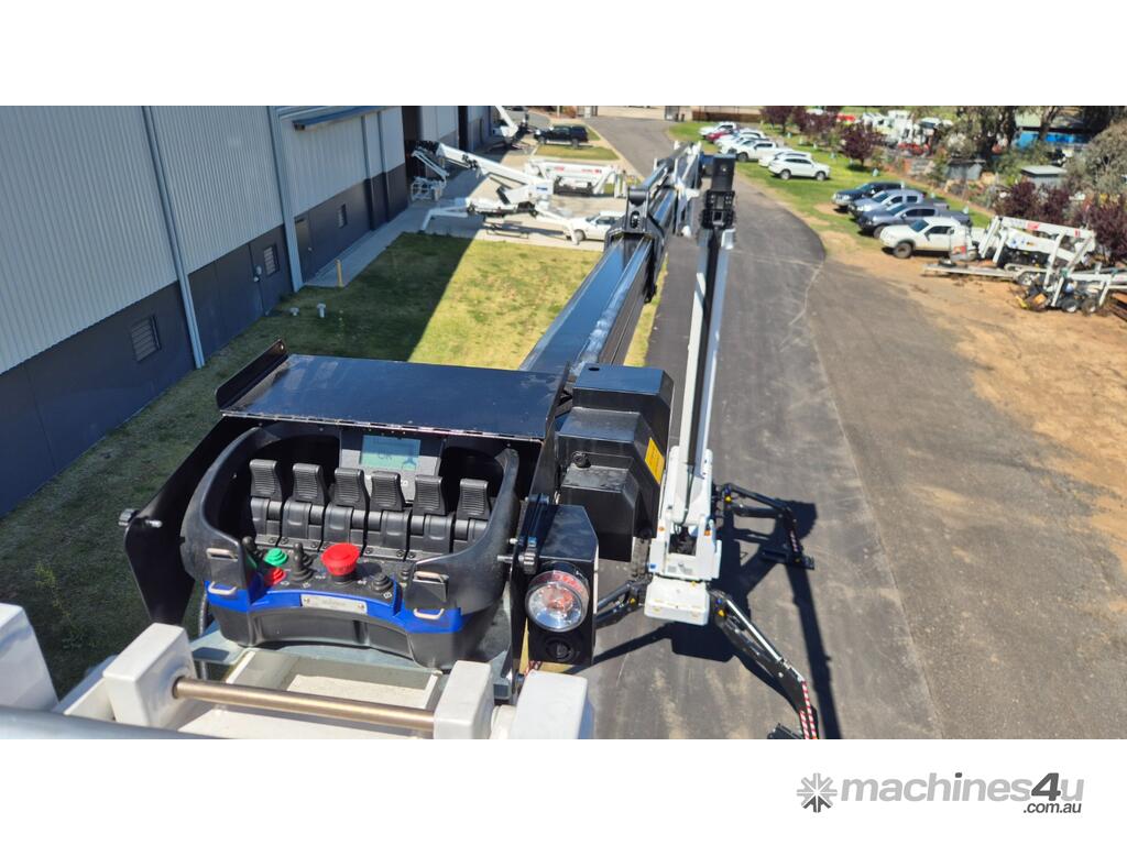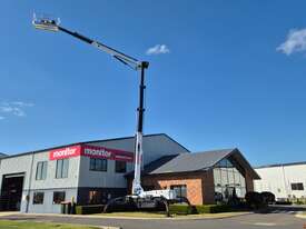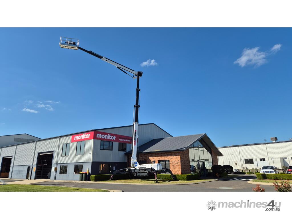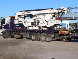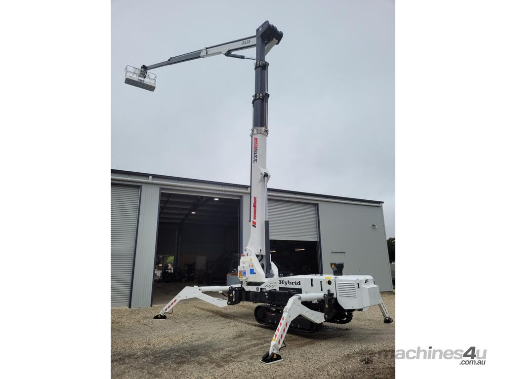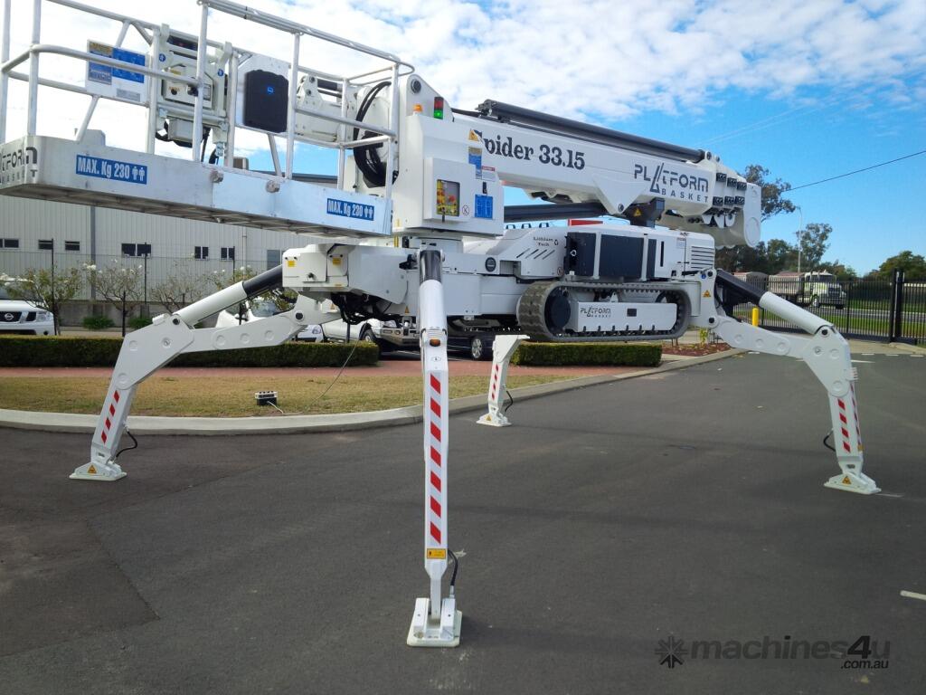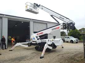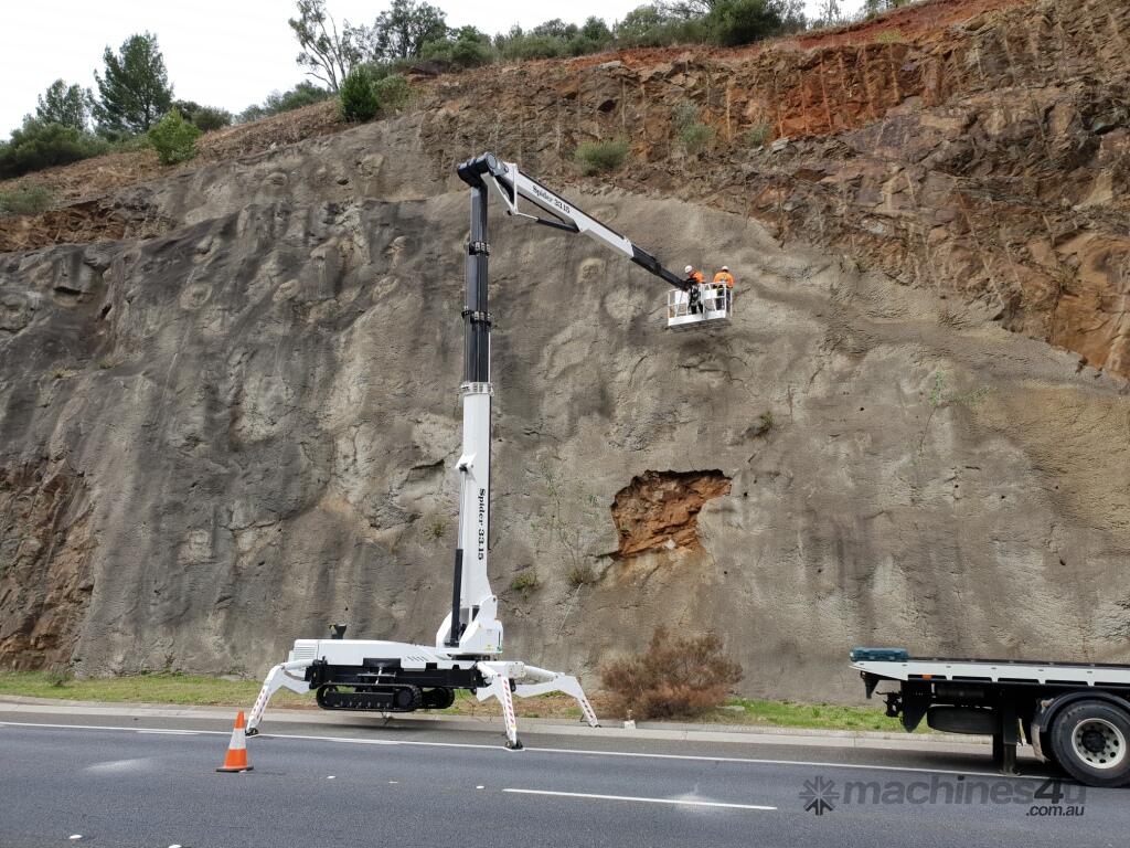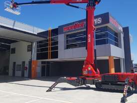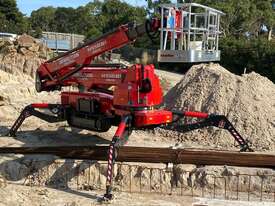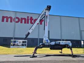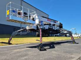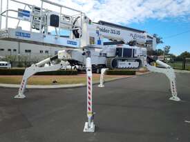 This 33 m Spider Lift is amazingly compact. With the basket removed, the length is only 6.5 m. Height is 1.99 m and width 1.39 m for commercial doorway access (with tracks retracted.) and a capacity of 300 kg. The extra-long travel stabilizer legs mean you can not only set the 3315 up on very uneven ground, but it can also self-load onto some trucks and trailers.