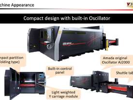 It comes with Amada own developed fiber laser engine with 2Kw power.