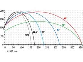Minimum cutting length tilted at 45° 375 mm