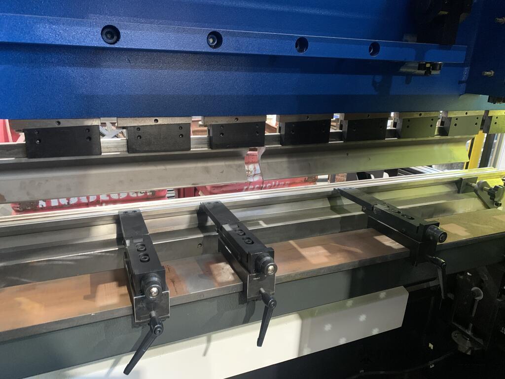 • Motorised back gauge with recirculating ball screws to 800 mm, with programmable control and digital read out (via Estun E21 Controller) complete with two heavy-duty flip type gauge fingers