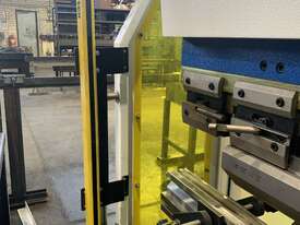 Vertical light curtains 300mm from top tool, mounted upon powder coated hinged side fences plus rear fences.