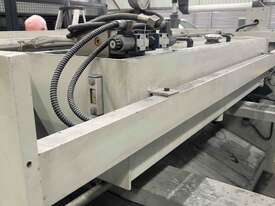Automated hydraulic material clamping system designed with individual hold downs along the length of the machine, The individual hold downs are fitted with nylon inserts to protect the material from indentation when clamping.