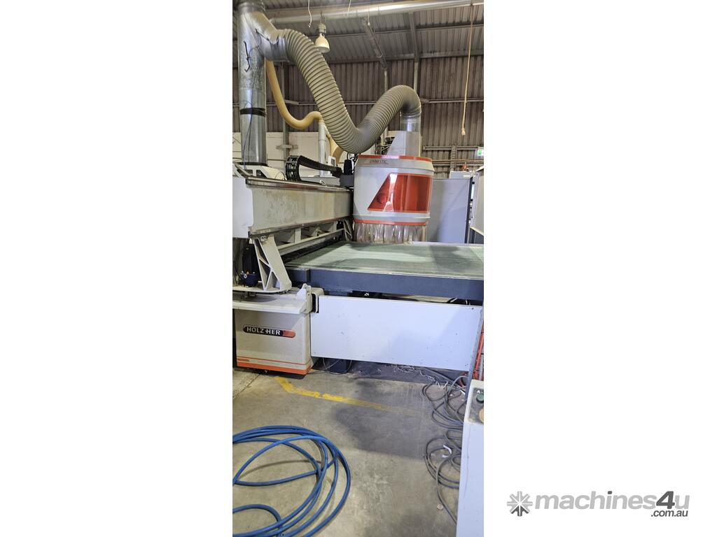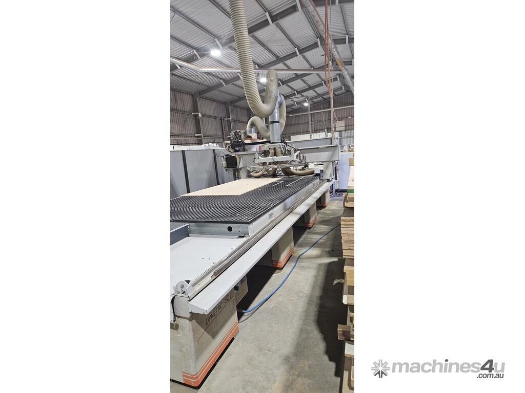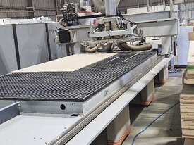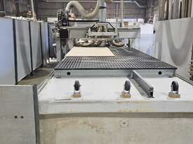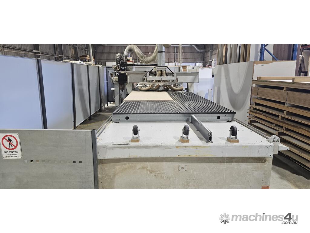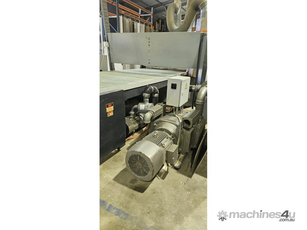 In good working order, bed size: 2100x3900, 18 vertical spindles (2 cutters and all chucks included in sale), spare Beckhoff electrical driver, 750m3/h Vacuum Pumps (1x250, 1x500). Scissor lift table available if required.