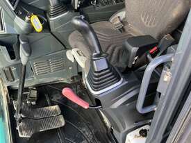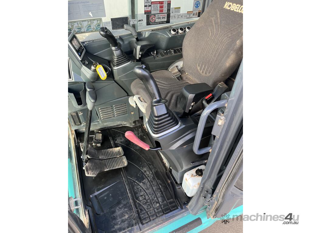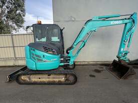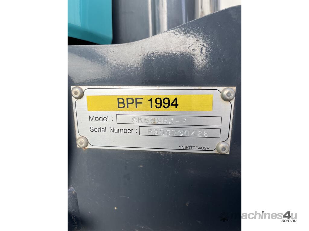 The Kobelco SK55SRX-7 is a 5-tonne (approx. 11,800–12,100 lbs) short-radius compact excavator powered by a 37-hp Yanmar Tier 4 Final diesel engine. It features upgraded hydraulics for 7% faster cycle times, superior lifting/digging power (12' 9" depth), and a redesigned cabin with improved ergonomics and safety features.