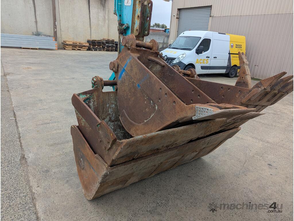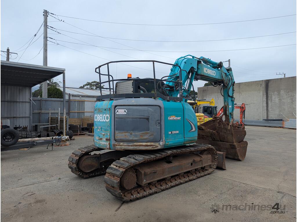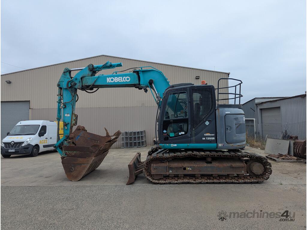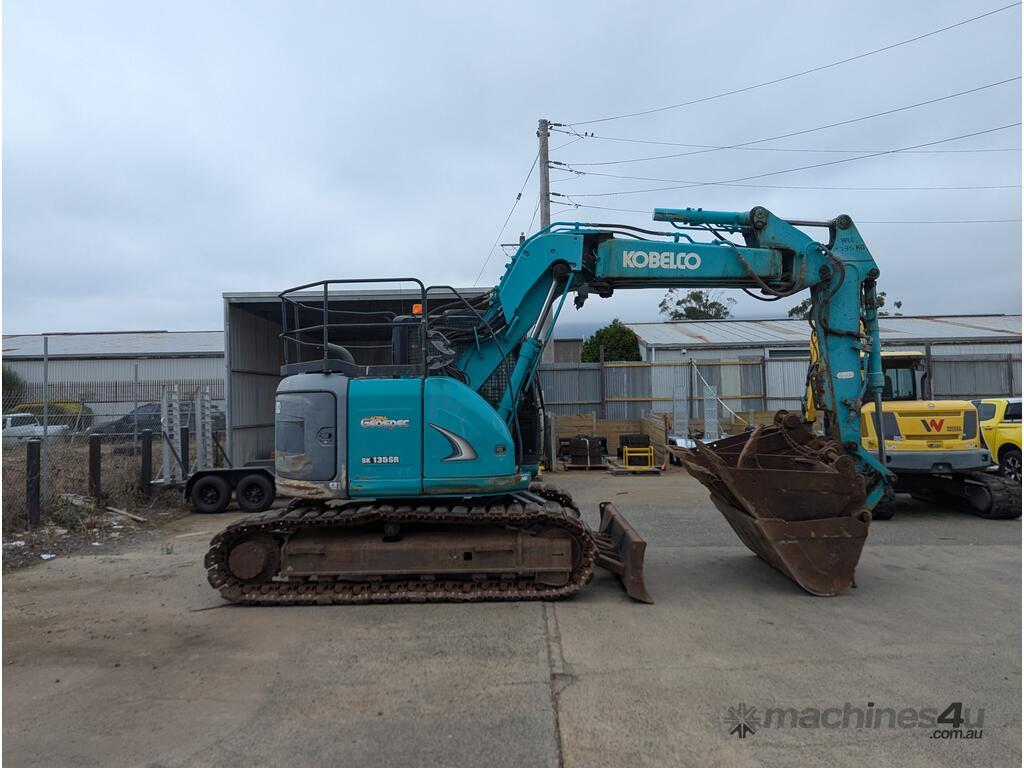 Kobelco SK135SR Excavator for sale with a huge range of attachments. This machine is being sold as traded. It is the perfect machine for a farm with a huge range of attachments to complete jobs around the property. It is rough to look at but in good condition for its age and hours.