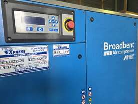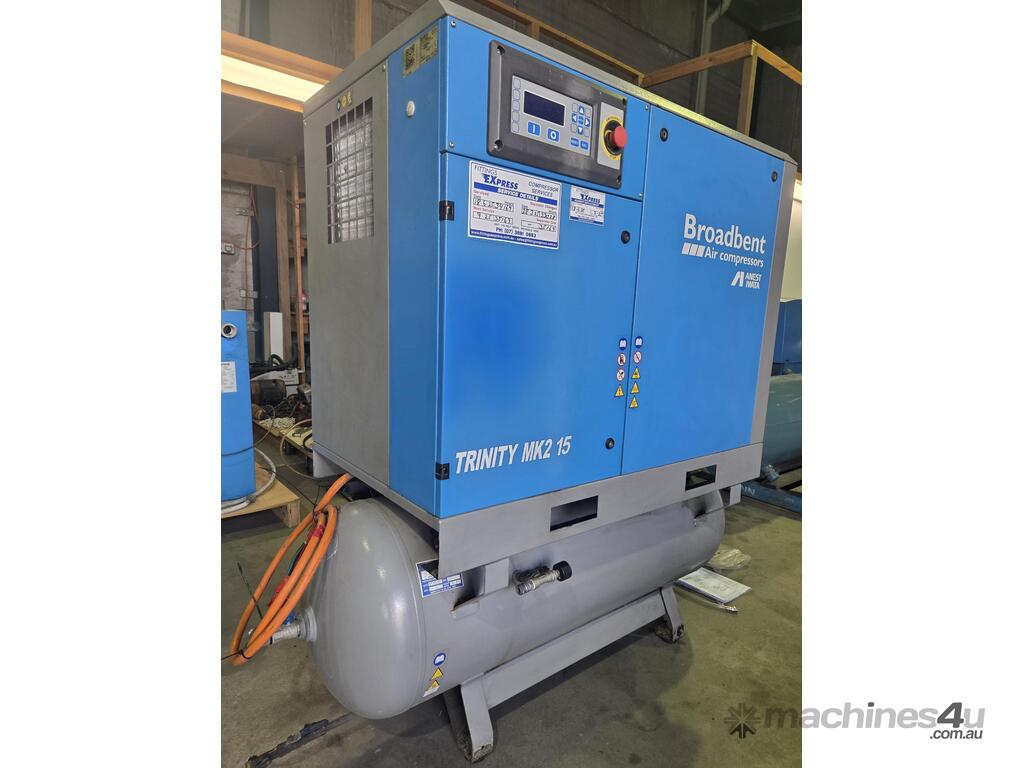 2). BROADBENT (ANEST IWATA ) TRINITY MK 11kw 15hp 415v 8 BAR 3-IN-1 FULLY FEATURED ROTARY SCREW COMPRESSOR Year 2019 MADE IN ITALY, INCLUDING BUILT-IN REFRIGERATED AIR DRYER 240v MOUNTED ON 270 LITRE AIR RECEIVER TANK, GENUINE LOW 8,574 RUN HOURS, HEAVY DUTY TOP QUALITY - POA. PHOTOS TO COME.