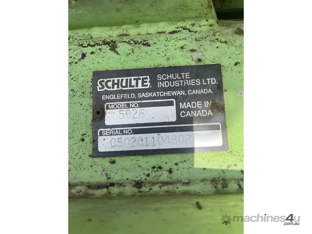 Used Schulte 5026 Rottary Cutter. Used unit, Cutting width 26ft (8m), transport width 3m, 1000 PTO spline, recommended 120hp (90kW). Located at Wellington NSW, All items are available to inspect and are sold on a "as is where is" basis. Available at MRE Auctions online sale. Serial No C2